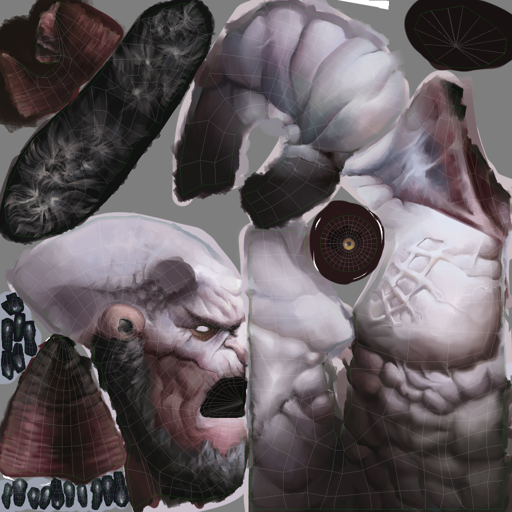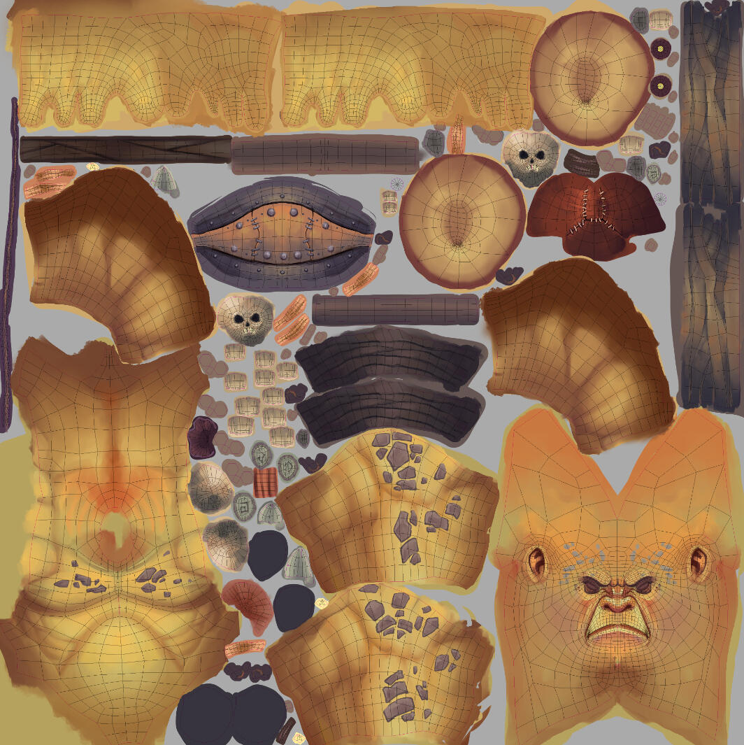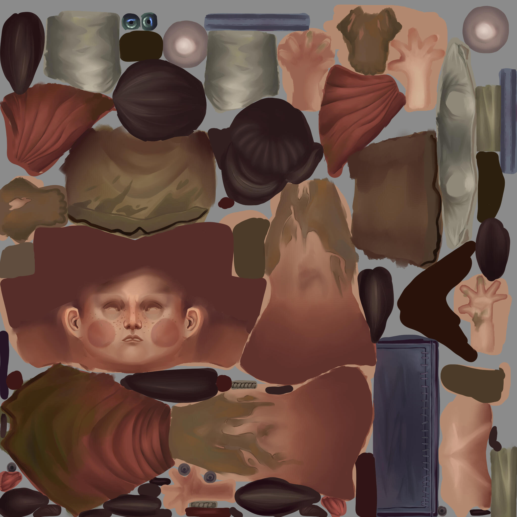 3Dsmax was used for UVs. Clip Studio Paint and Adobe was used for painting the textures.